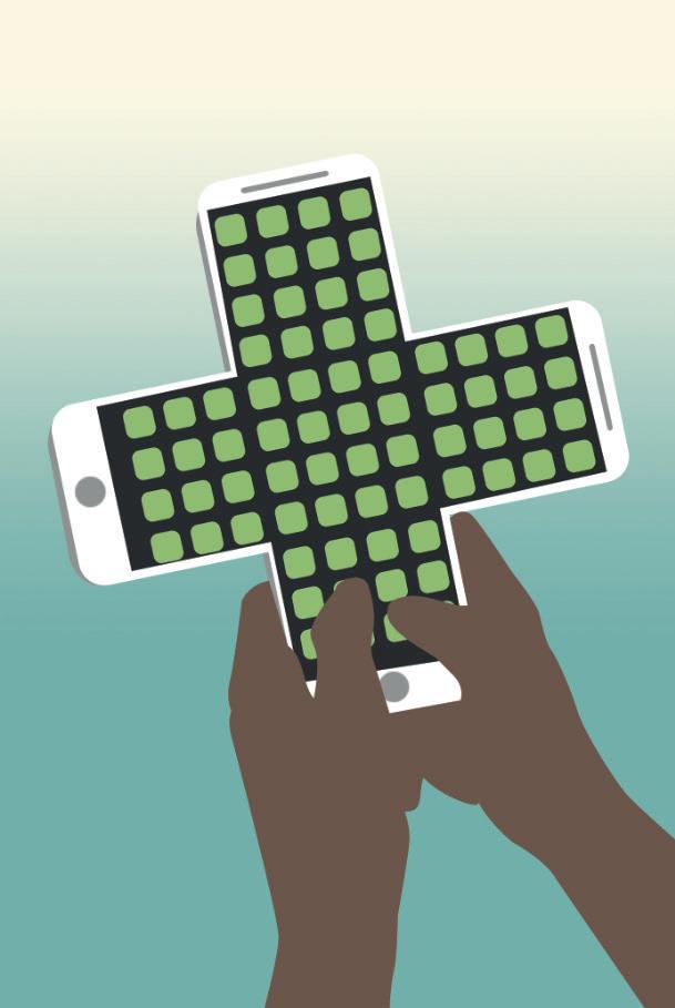 L’illustratrice Ana Yael a exploré plusieurs pistes pour rendre compte de la thématique des applications de santé (p. 51).