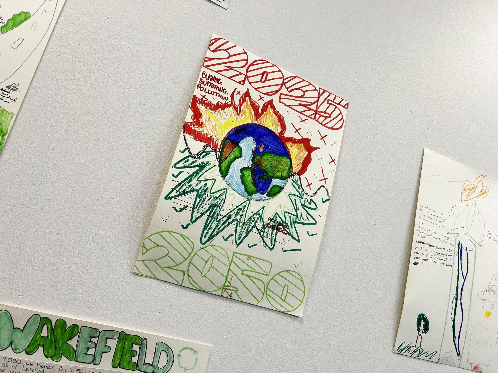 40min Poster creation. Posters created in response to this prompt: It’s the year 2050, and Wakefield has done a great job at tackling climate change. Imagine you’re walking around your area - what do you see, hear and feel? What’s different? What makes it a great place to live?