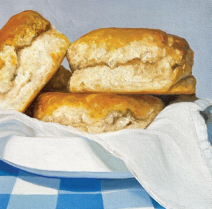 Mississippi artist Madeleine Bridges specializes in oil paintings of Southern food. She is a regular vendor at Oxford’s Double Decker Arts Festival, and her work is frequently displayed at Caron Gallery’s downtown Tupelo and Laurel locations. Read more about her and see more of her work on page 44.
