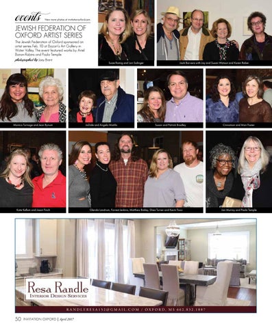 JEWISH FEDERATION OF OXFORD ARTIST SERIES The Jewish Federation of Oxford sponsored an artist series Feb. 10 at Bozart’s Art Gallery in Water Valley. The event featured works by Ariel Baron-Robins and Paula Temple. photographed by Joey Brent