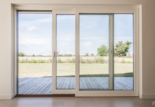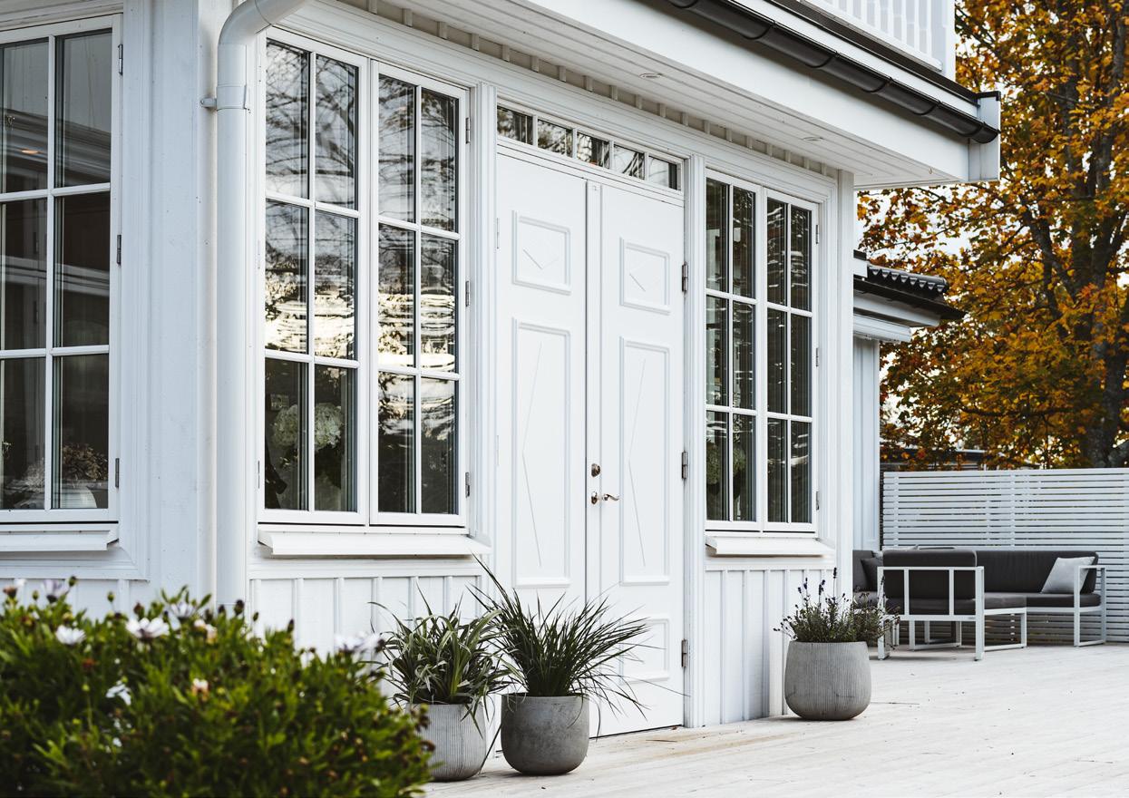 För att få en altandörr som linjerar med intilliggande fönster väljer du en dörr med bröstning. Bröstningen kan bestå av en glasdelande post eller fyllning nertill.