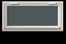 Gångjärnen sitter i fönstrets överkant och öppnas utåt. En vanlig lösning i bland annat källare och garage.