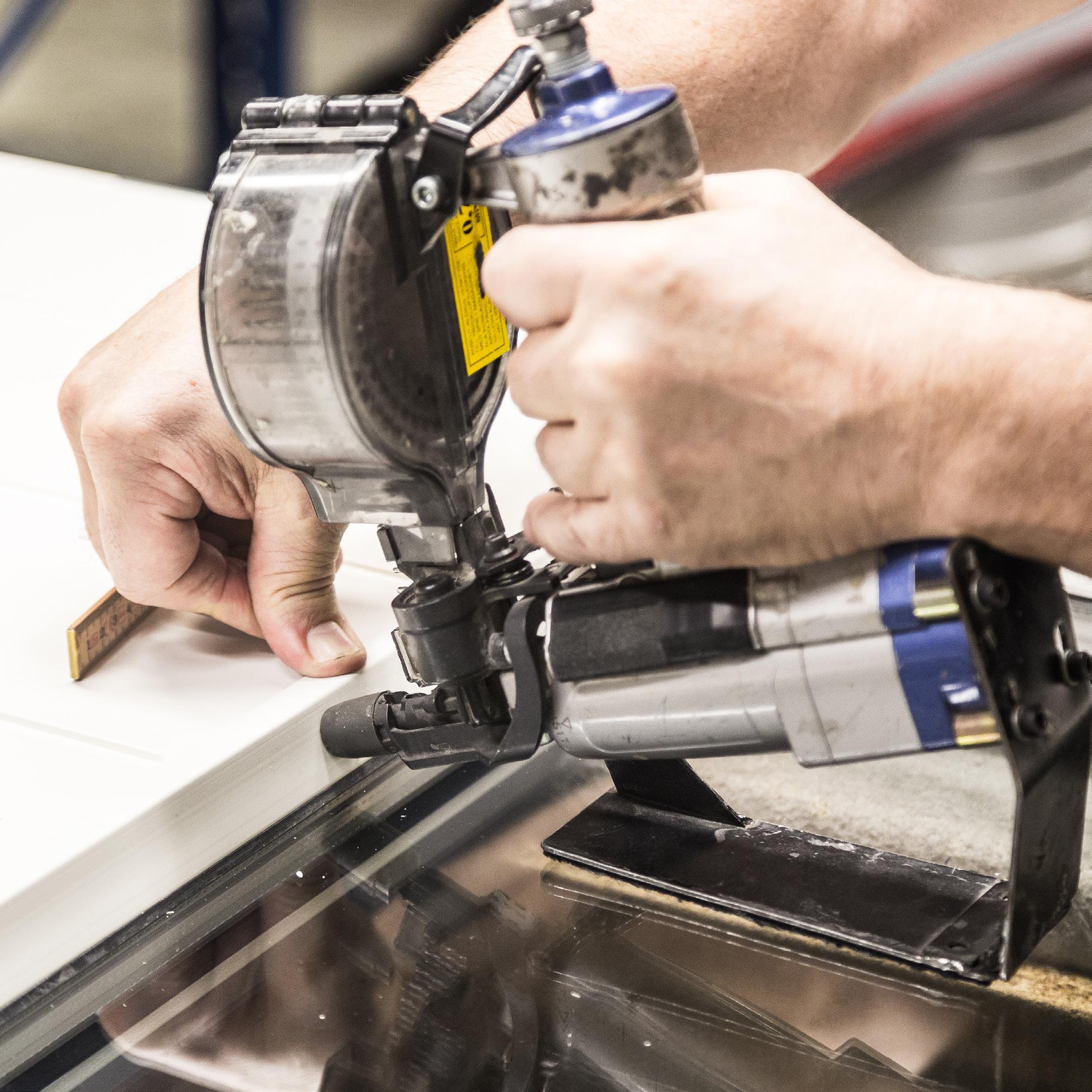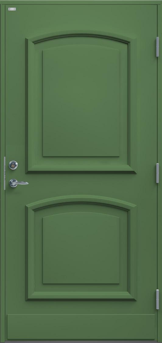 Det gör vi i dubbla lager med ett väderbeständigt färgsystem, vilket ger en slitstark yta som håller över tid. Har du valt montering? Då ser vi till att låset sitter på plats innan dörren är redo att levereras.