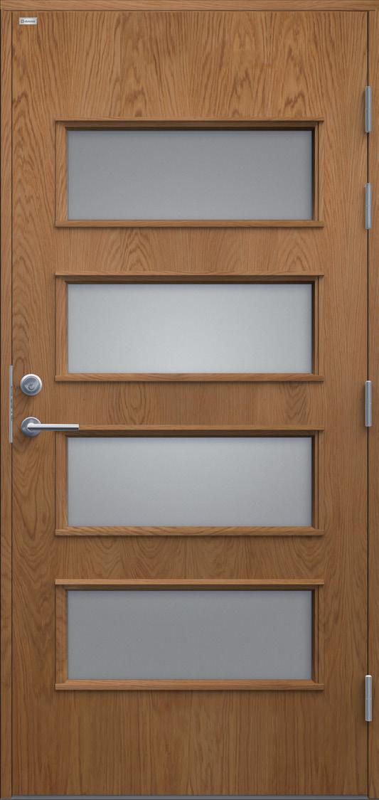 Ger dörren ett exklusivt och sparsmakat utseende. Dessutom höjs säkerheten, eftersom tapparna är helt oåtkomliga från utsidan.