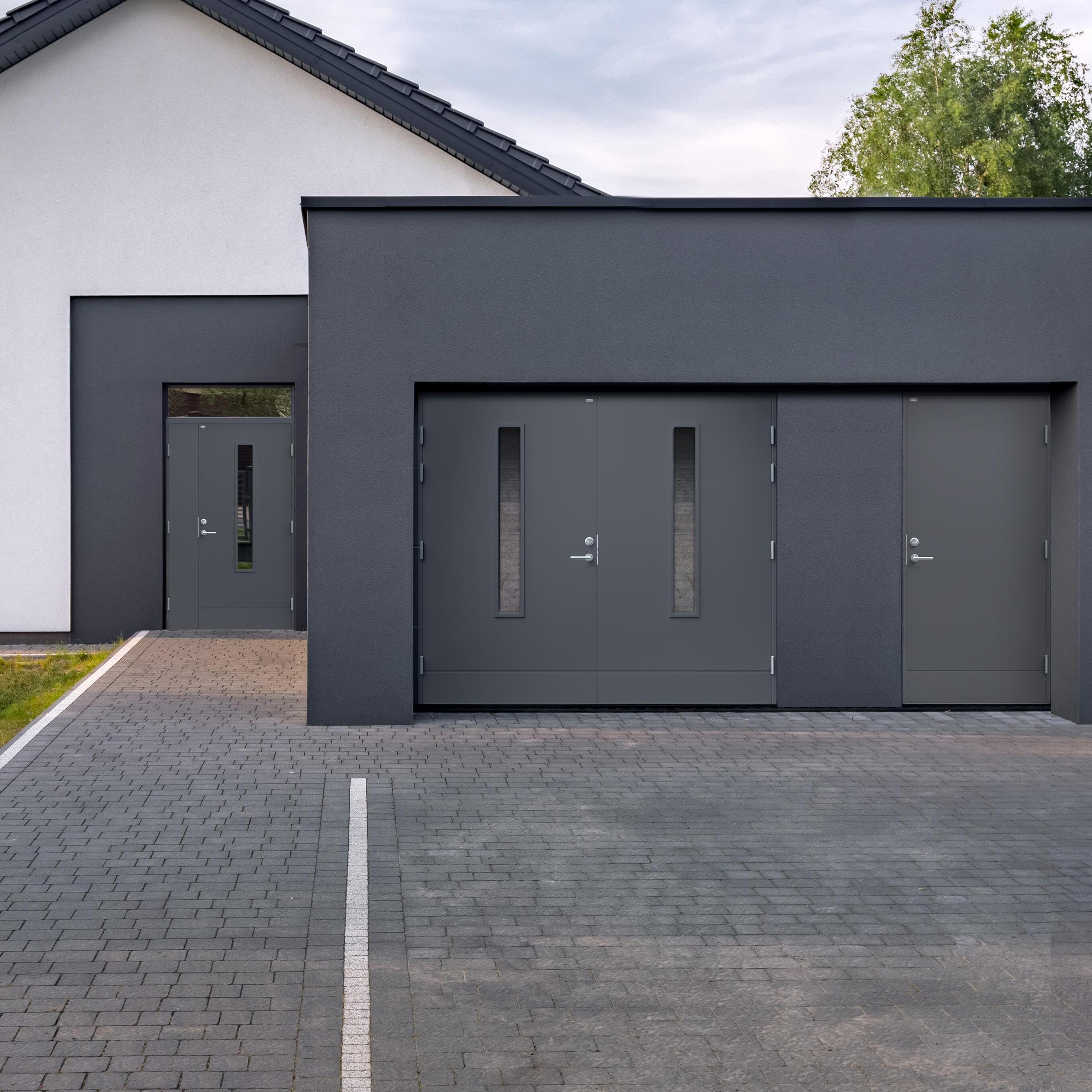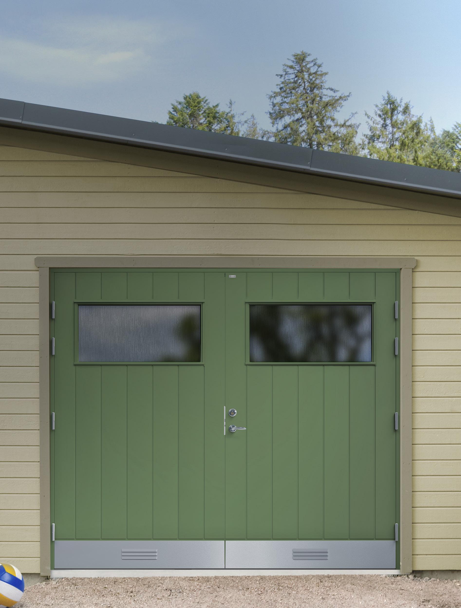 Kommer garageporten att se gammal och tråkig ut bredvid den nya entrédörren? Inga problem, i de flesta fall kan du få pardörrar och garageport i exakt samma modell och nyans som våra ytterdörrar. Två nya dörrar är dubbelt så snyggt! Pardörrar på sidan 41 och garageportar på sidan 60.
