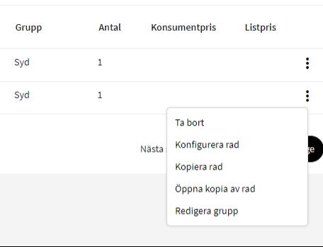 Du kan även välja att kopiera en rad och öppna den direkt i konfiguratorn.