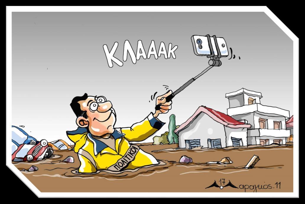 την εικόνα και τη γραφή, τη σάτιρα και την υπερβολή, μας δημιουργούν μια εύληπτη και άμεση οπτική και μια τεκμηριωμένη εμβάθυνση σε εθνικά και παγκόσμια περιβαλλοντικά θέματα. Σήμερα, στη σύγχρονη εποχή της εικόνας στην κοινωνία της πληροφορίας, η γελοιογραφία μας δίνεται ως ένα ευχάριστο και έξυπνο μέσο , που με όπλο την τέχνη, το χιούμορ και την υπερβολή, μας βοηθά να προσεγγίσουμε σοβαρά περιβαλλοντικά θέματα, όπως αυτό των καταστροφικών πλημμυρών.
