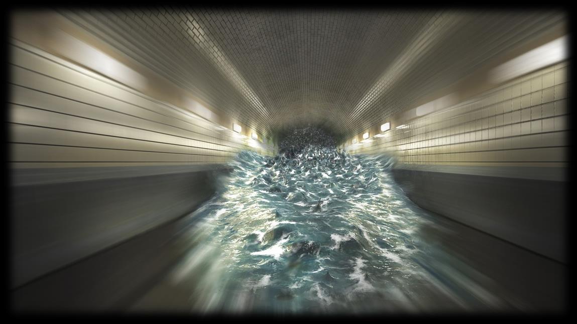Πλημμυρισμένο βιομηχανικό τοπίο στο Αμβούργο σε άσπρο - μαύρο. ΠΗΓΗ ΤΟΥ ΕΡΓΟΥ Μαζί με το τρένο στην υπόγεια σήραγγα τρέχουν και τα νερά της πλημμύρας… ΠΗΓΗ ΤΟΥ ΕΡΓΟΥ Φ9 Φ10 Δευκαλίωνας: Εκπαίδευση για τις Πλημμύρες