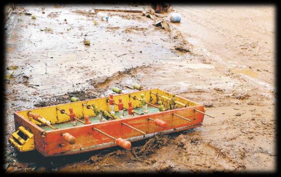 Σπασμένες παιδικές κούκλες μέσα στη λάσπη που άφησε η πλημμύρα . ΠΗΓΗ ΤΟΥ ΕΡΓΟΥ Σπίτια, γήπεδο, δέντρα … αντί για βάρκες στα νερά του φουσκωμένου Δούναβη. ΠΗΓΗ ΤΟΥ ΕΡΓΟΥ Φ5 Φ6 Δευκαλίωνας: Εκπαίδευση για τις Πλημμύρες