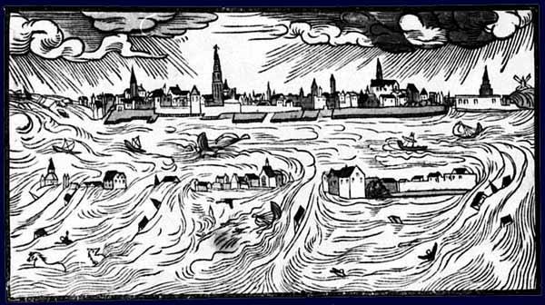 Περισσότερα από 100 χρόνια αργότερα, το 1787, αυτή η καταστροφή περιγράφηκε στο ιστορικό βιβλίο "Het Schrickelijcke Oordeel Godts" - λογοτεχνικά μεταφρασμένο ως "Η τρομερή κρίση του Θεού".