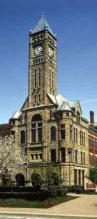 The Clark County Heritage Center was originally constructed as Springfield’s City Building and marketplace. Architect Charles A. Cregar designed the building in the Richardsonian Romanesque style, which is defined by its massive stonework, arches and towers. The building is a block long and just fifty feet wide. The building underwent a multi-million dollar renovation in the late 1990s and today houses the collections of the Clark County Historical Society The center includes a major National Road exhibit on the first floor