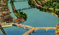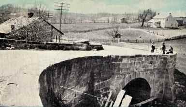 Middle: Old National Road bridge, Bridgewater, Ohio, demolished. Notice toll house on left.