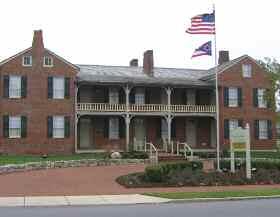 Constructed 1838-39, with an 1850s west wing, this three-story brick, Federal style inn and tavern, nostalgically known as “The Old Pennsylvania House,” served travelers on the National Road during the short-lived coach and wagon era. In fact, the inn was the terminal for the Ohio Stage Company. The site originally included a large stable, pens for drovers’ livestock and yards for freight wagons. The Pennsylvania House was the boyhood home of Dr. Isaac Funk, of Funk & Wagnalls dictionary fame, whose parents operated the inn during the 1840s. In 1938, the Lagonda Chapter of the Daughters of the American Revolution, acquired the abandoned and derelict Pennsylvania House, restored the building