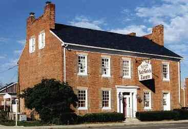 On a rise next door to the school is the brick tavern known as Lentz Tavern. This large brick structure once featured a twostory porch, and a large wooden awning or “stand” for sheltering wagons. Originally, travelers could pull up in front of the inn When the National Road was upgraded, a cut was made to level the Road, leaving the tavern standing high above. Now owned by Ohio University, the building will soon undergo restoration