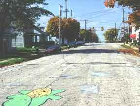 Main Street (National Road) with freshly laid planks in Hendrysburg