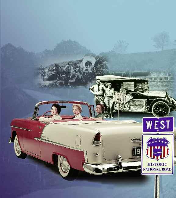 From Wheeling, West Virginia, cross the Wheeling Suspension Bridge, 1849, a National Historic Landmark. Turn right (north) onto York Street for three blocks. Then go left (west) on Zane Street one block. Follow the U.S. 40 West signs at Madison School and cross into Bridgeport. Here the National Road intersects with State Route 7, part of the Ohio River Scenic Byway, another National Scenic Byway.