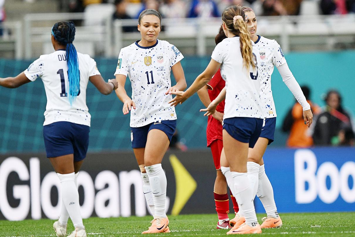 The United States’ USA’s Sophia Smith (11) celebrates scoring her team’s second goal against Vietnam during a World Cup group match at Eden Park in Auckland, New Zealand, on Saturday, July 22. SAEED KHAN/GETTY IMAGES/TNS