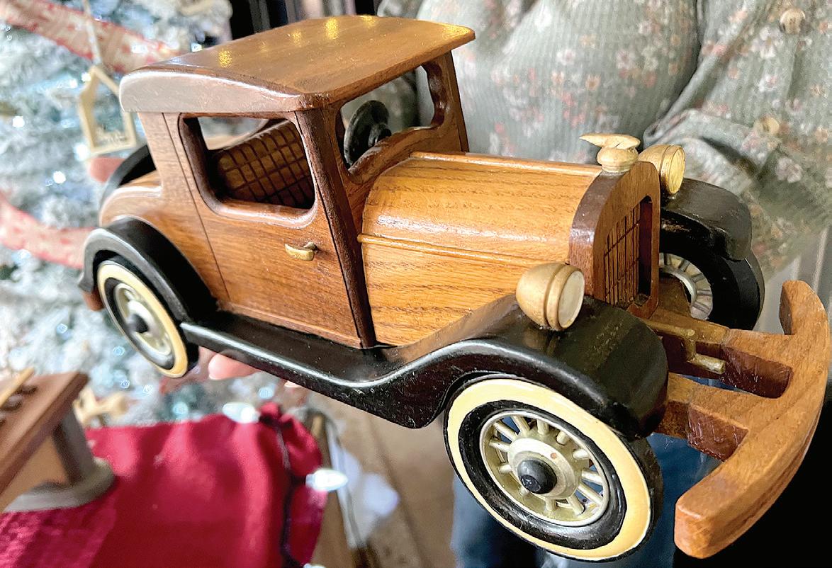 Angie Wray’s father, Wayne Jackson, carves wooden model trucks such as this one. Note the detail of the upholstery.