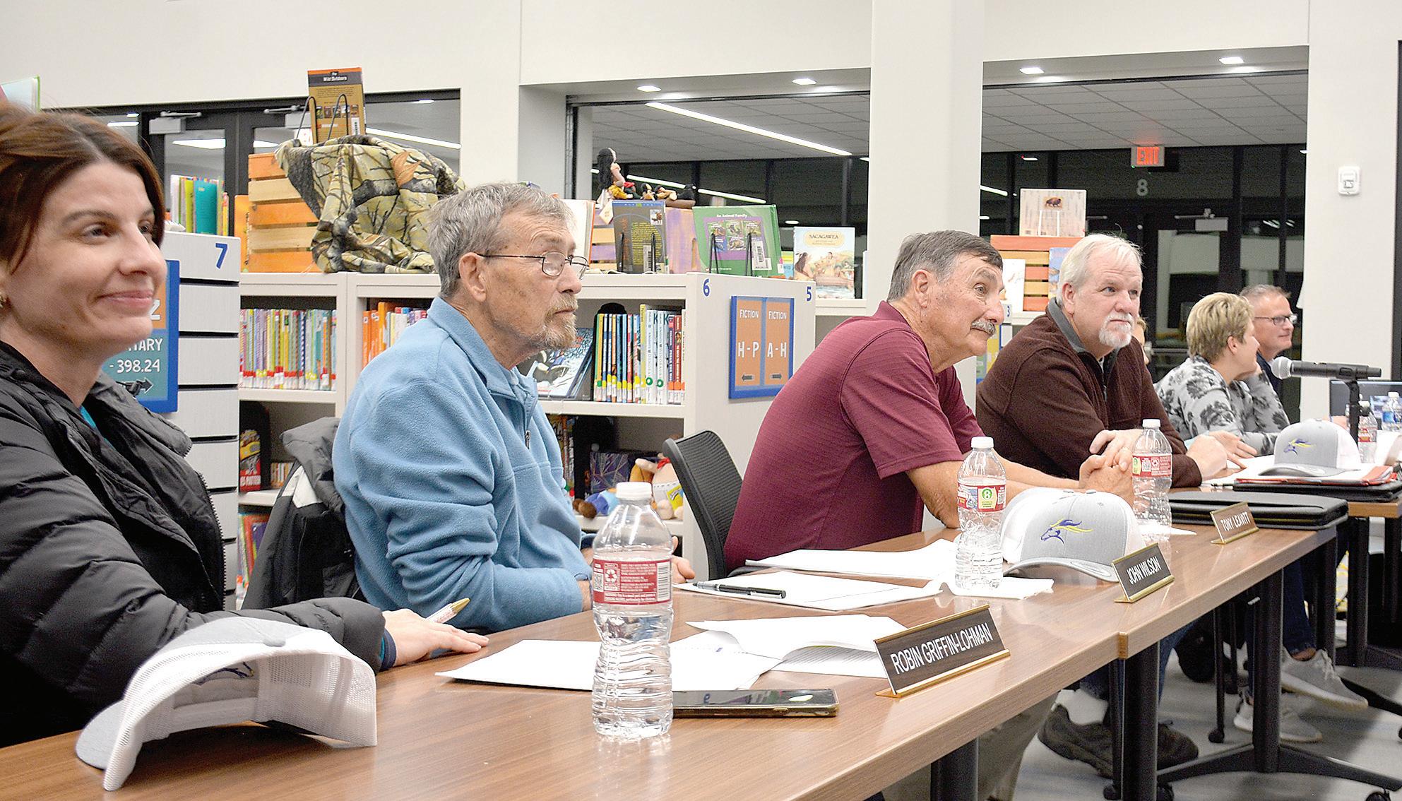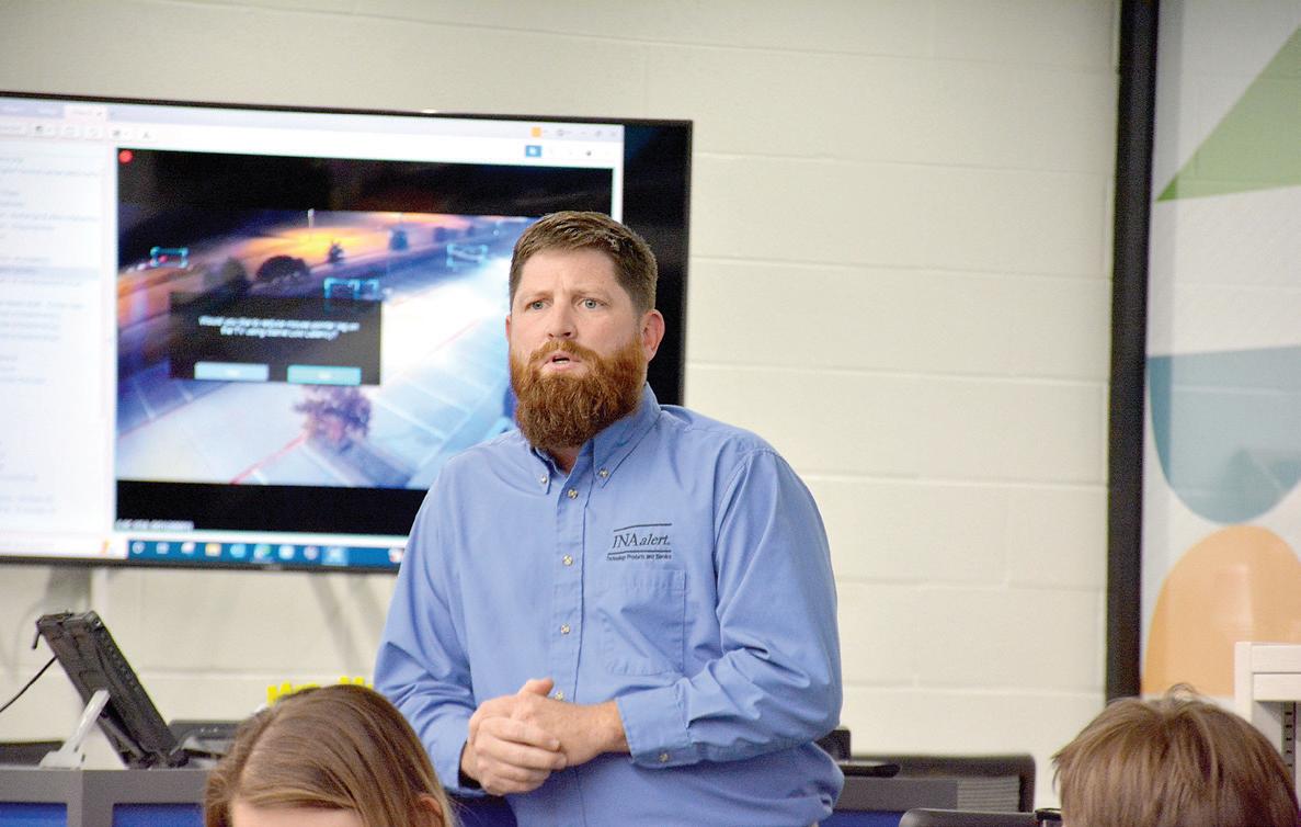 Jake Strecker, INA Alert owner, delivered a presenta tion to the board. USD 257’s new technology director Ben Prasko was on hand to answer questions.