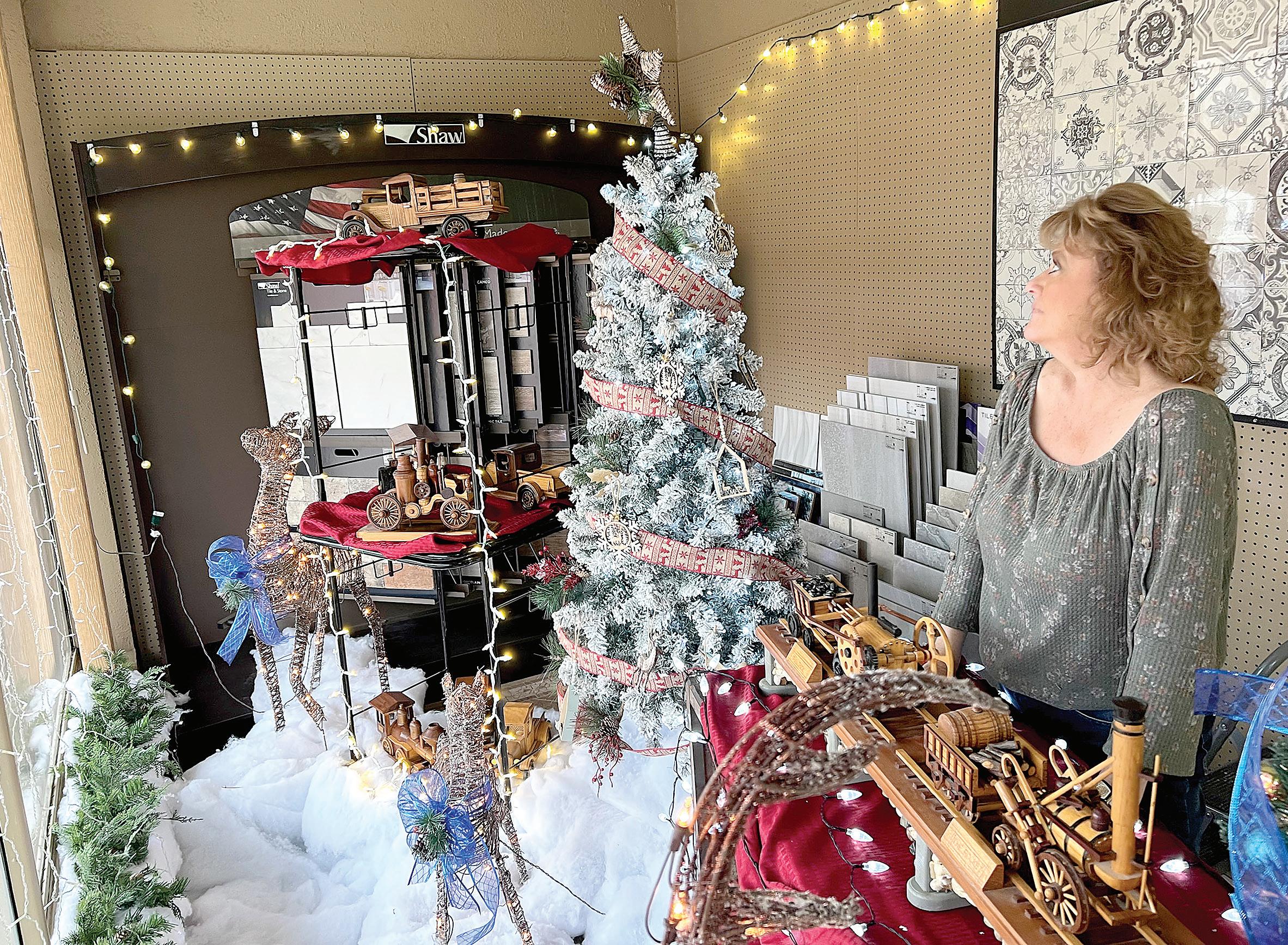 Her storefront windows at Decorator Supply are a testa ment to her creativity, aglow with twinkling curtain lights at the corner of Jackson and Washington avenues, in front of an array of reindeer, Christmas trees and fresh garland, purchased new this year.