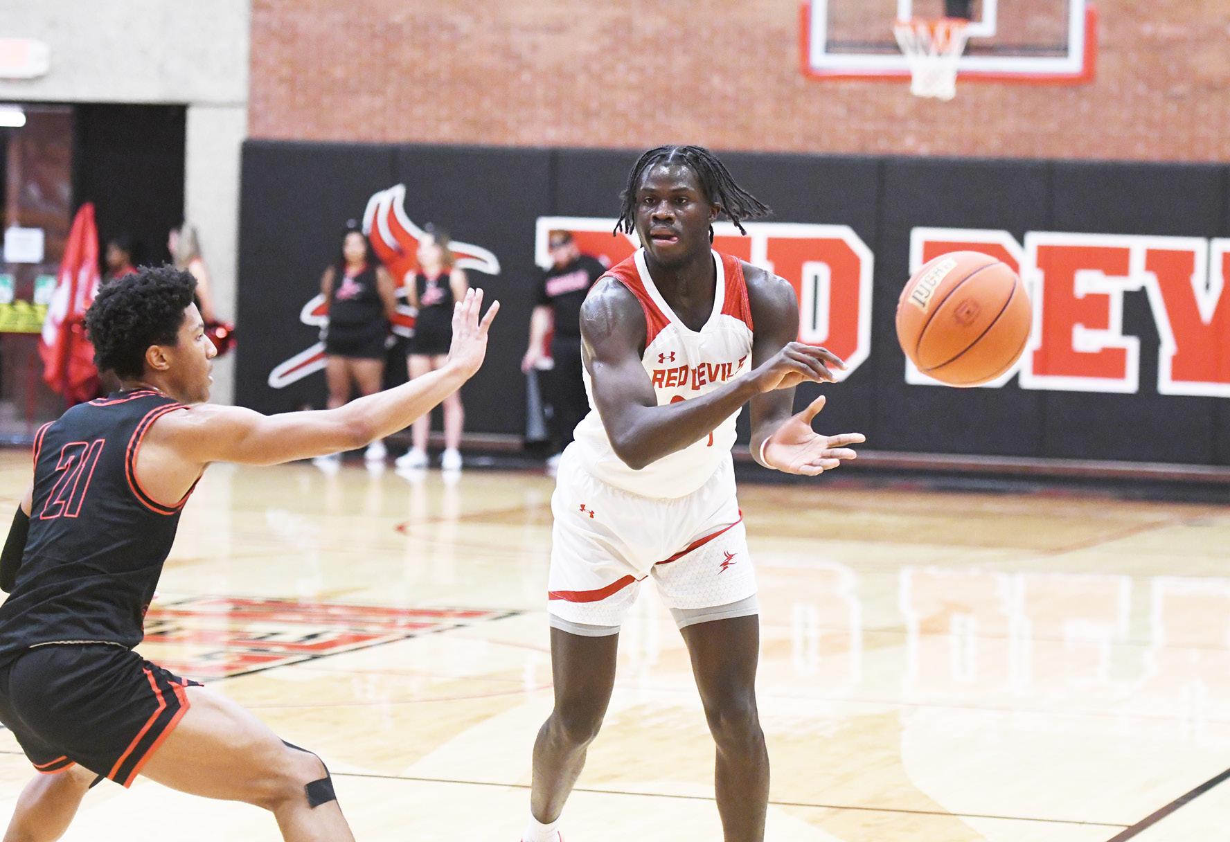 56-33. Red Devil Brayden Thompson snatched a team-high eight re bounds while Chris tian Arndt grabbed six boards and Dixon col lected five rebounds.