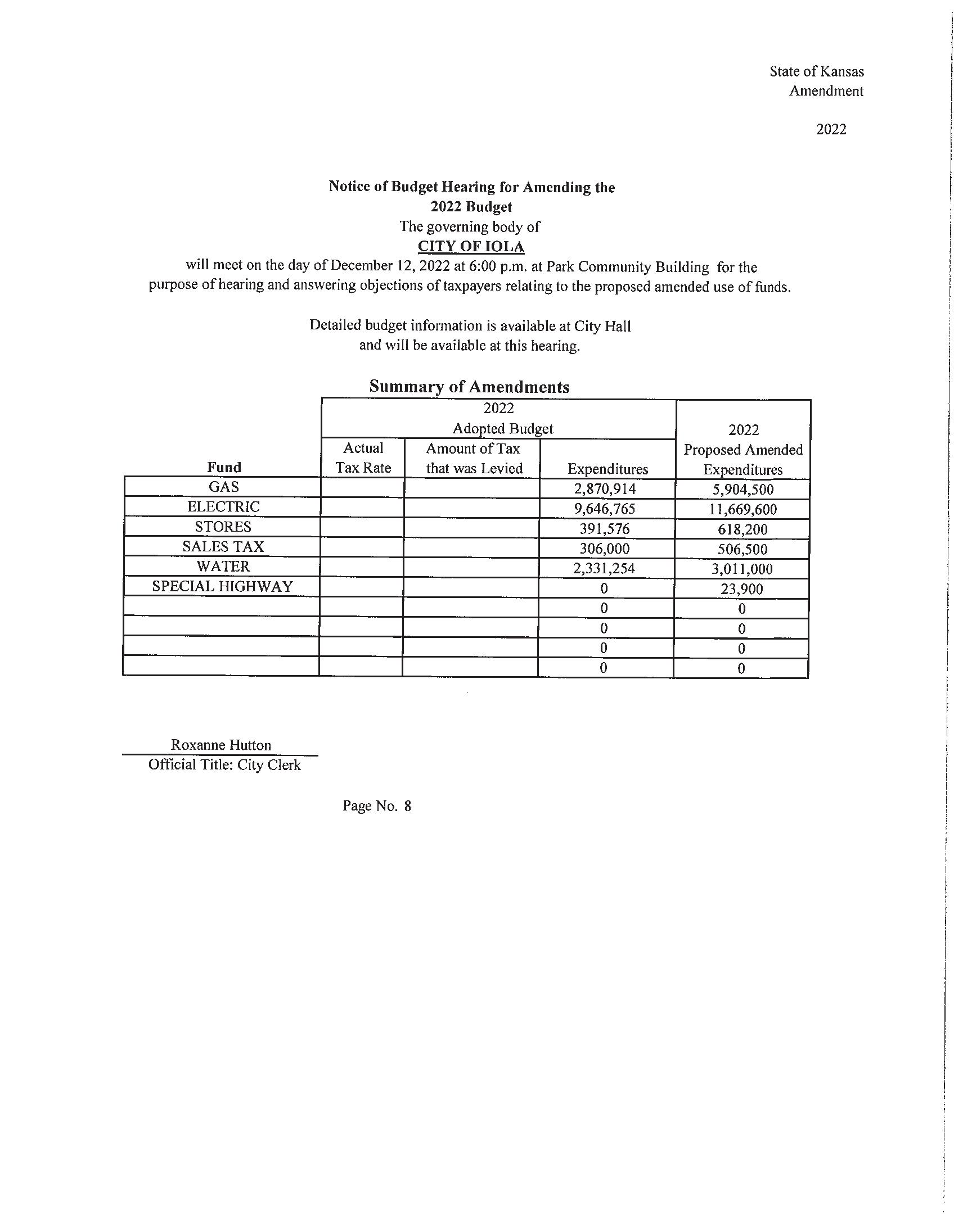 GARNETT — In creased utility costs have forced Garnett city commissioners to request amending their budget, according to the Anderson County Re view.