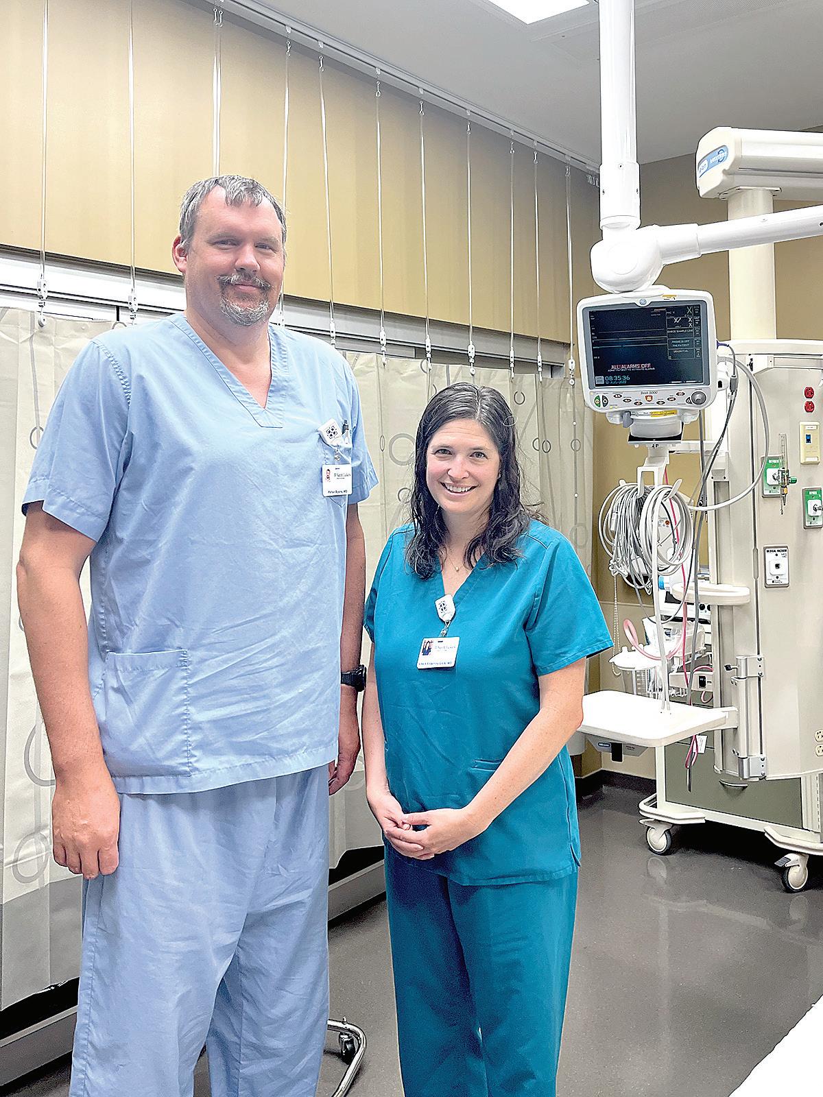 By VICKIE MOSS The Iola Register Goal is to keep patientsERhere Dr. Pete Byers, left, and Dr. Laura Edgerley-Gibb are leading emergency and critical care at Allen County Regional Hospital as part of the Innova Emergency Medical Associates, based in Denver. REGISTER/VICKIE MOSS Therese Yetzbacher, left, and Doug Northcutt of the Willis J. Ross Veterans of Foreign Wars Post No. 6324 in LaHarpe will host a public forum Friday for area military veterans, their spouses and caregivers to learn more about eligibility for VA benefits.