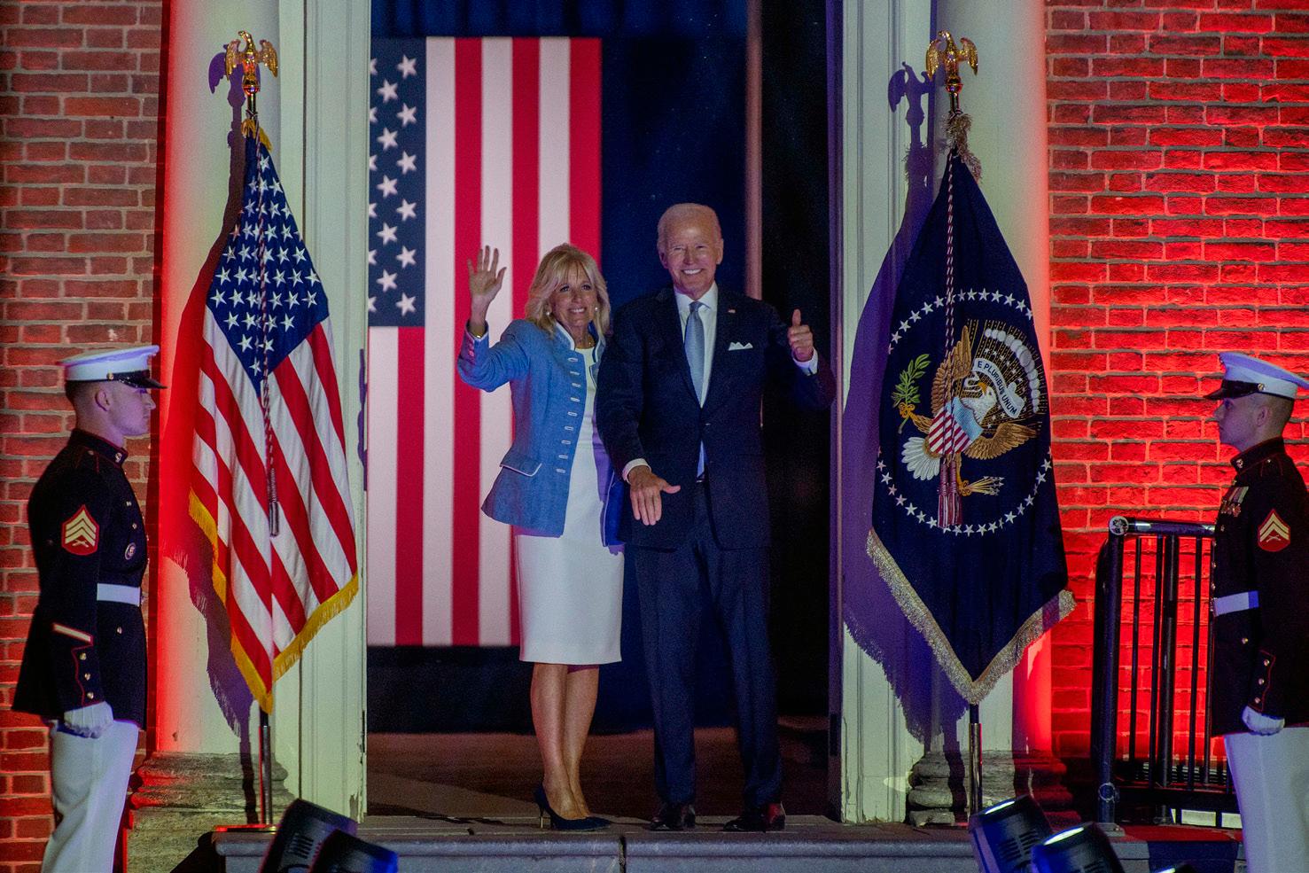 President Biden and his wife, Jill Biden, leave after his speech art Independence Hall on Thursday in Philadelphia. It was his second visit to Pennsylvania in three days.
