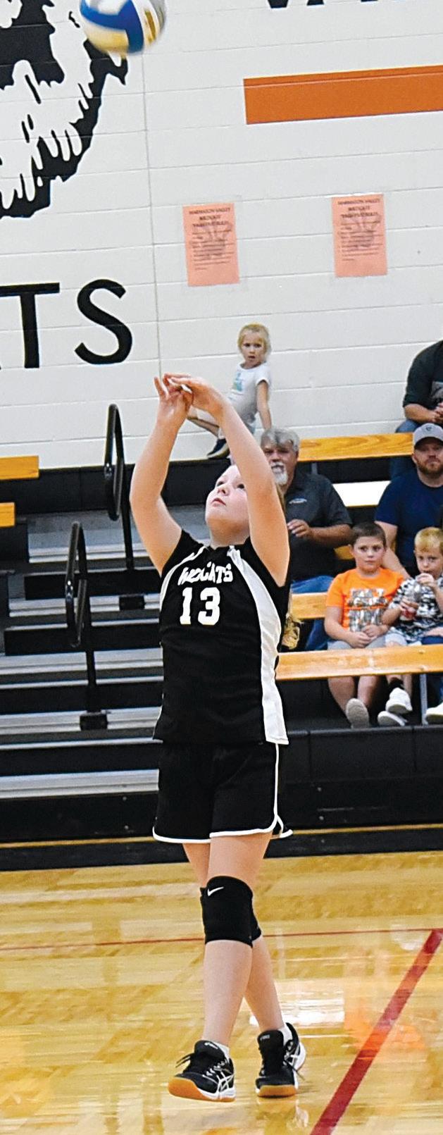 MORAN — Mar maton Valley Junior High’s volleyball team wrapped up a success ful night on the court Thursday, sweeping visiting St. Paul in A, B and C team matches. “We are so proud of the effort from each player on every team,” head coach Brenda Mills said. “Teamwork was key. Our teams cameThetogether.”Ateam won a three-set thriller, 25-22, 22-25 and 15-11. “The A team made several awesome saves and hits,” Mills said. Emma Michael led the way with seven points, followed by Taylen Blevins with six, Jae Beachner with five, Alayna and Layla Cook with four each and Ad disyn Drake with three. The Wildcat B team rolled to a 25-16 and 25-5 win. Andie Carr poured in 16 points, followed by Mahala Burris with 13, Evva Sander with three and Adisyn Pirtchard and Reagan Marshall with one each. Like with the A team, the B team match was filled with several clutch saves and hits, MillsThesaid.Cteam made it a clean sweep with a 25-14 win. Marshall scored six points, Harlie Cook four, Bella Winner three and Myleigh Eslick two. “Our plan is to keep working hard every practice, so we can im prove as our season pro gresses,” Mills said. Marmaton Valley re turns to action Thurs day at Yates Center.