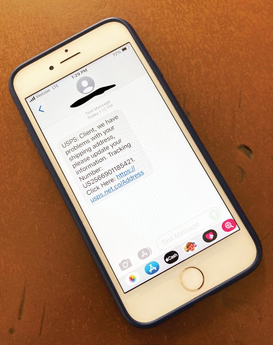 to all the friends and family who attended, brought food, made pies, and helped donate to my benefit auction. Thanks to the Elks Club of Iola for the use of their building, Eric and Julie for auctioning off items, and Marilyn Page for all the hard work she put in. Due to health issues, my surgery has been postponed for four weeks. Keep me in your prayers and God bless you all. Wouldn’t it be easier for them to get a job? Seems so. But the scammers are at it again, this time targeting cell phones in the 620 area code with a fake notification from the U.S. Postal Service. Several area residents have recently reported receiving theMelonietext.