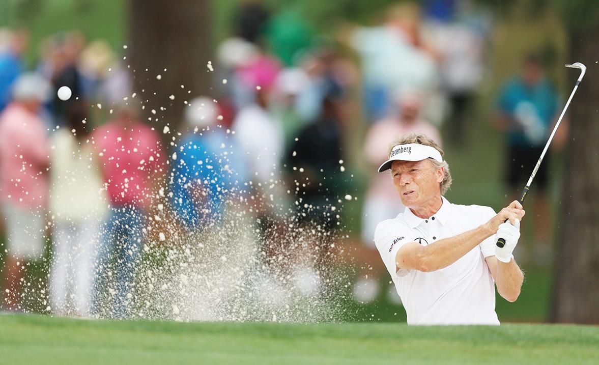 Bernhard Langer hits out of bunker on seventh hole during second round of the 2023 Masters Tournament at Augusta National Golf Club April 7 in Augusta, Ga. JASON GETZ/TNS