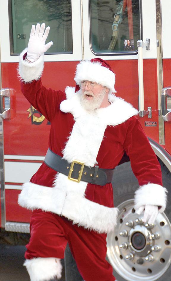 Santa Claus made his first visit of the season at downtown Iola on Saturday afternoon, courtesy of a ride around town with the Iola Fire Department.