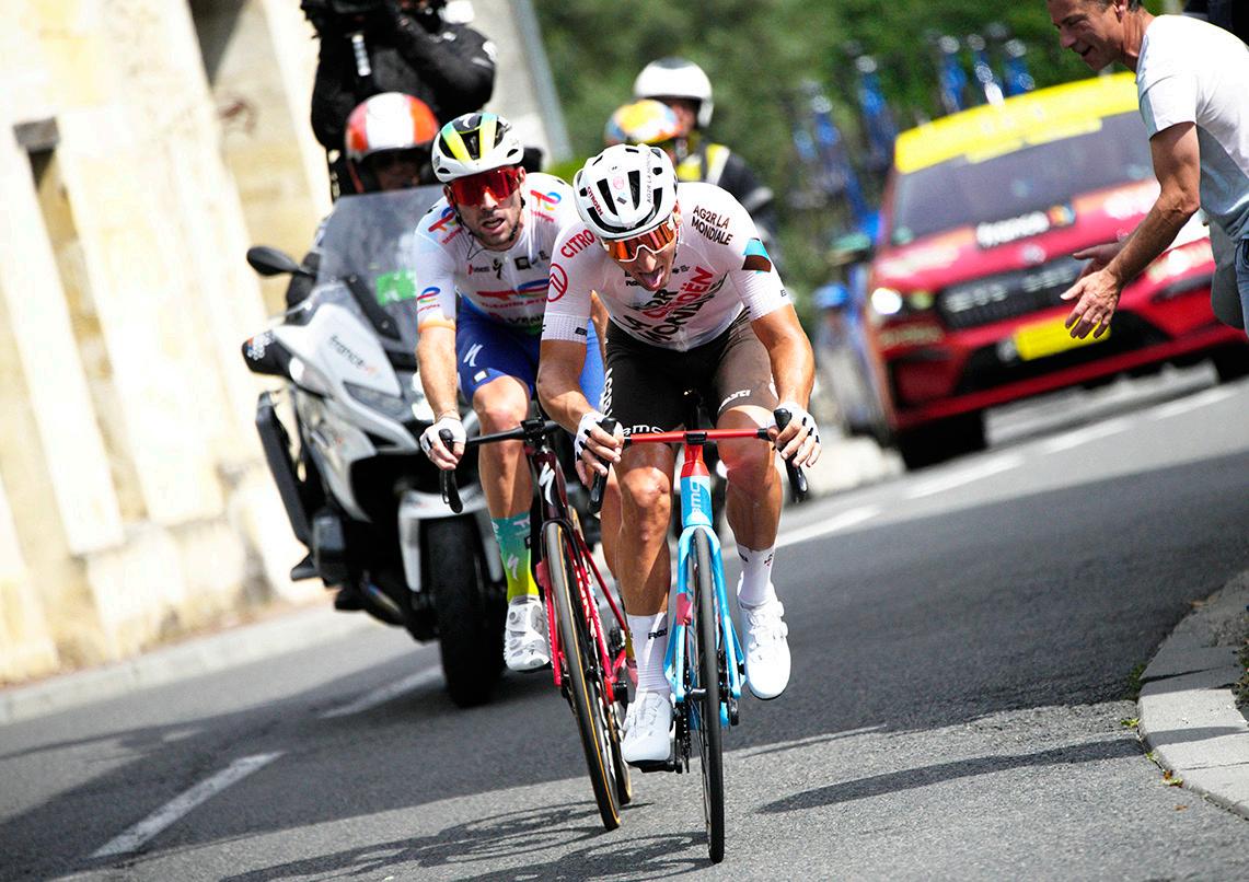 Guglielmi was caught further down the road after Pierre Latour and Nans Peters escaped from the bunch in the chase. After Guglielmi got dropped, the pair prolonged their effort for a while but were ultimately swallowed.