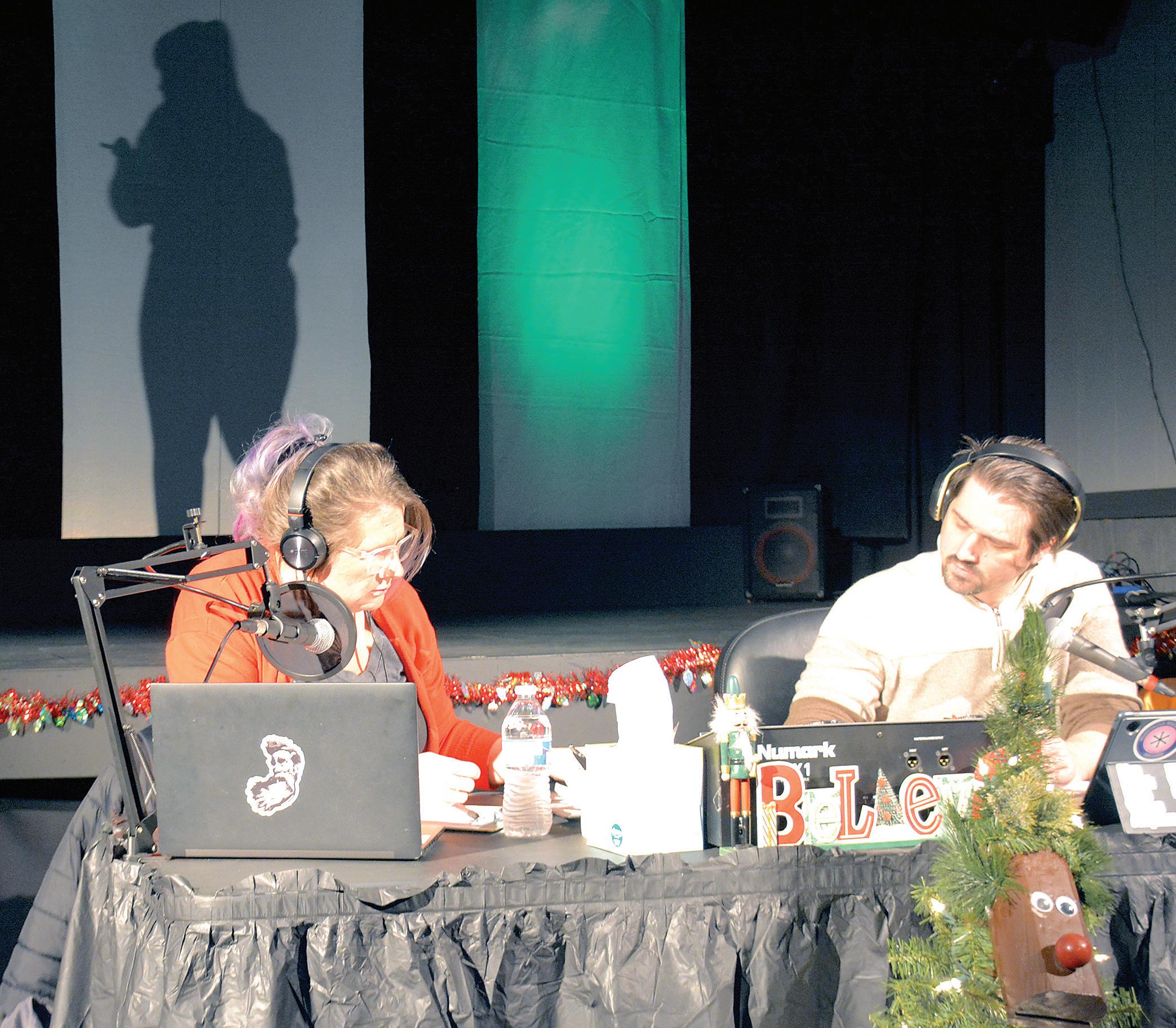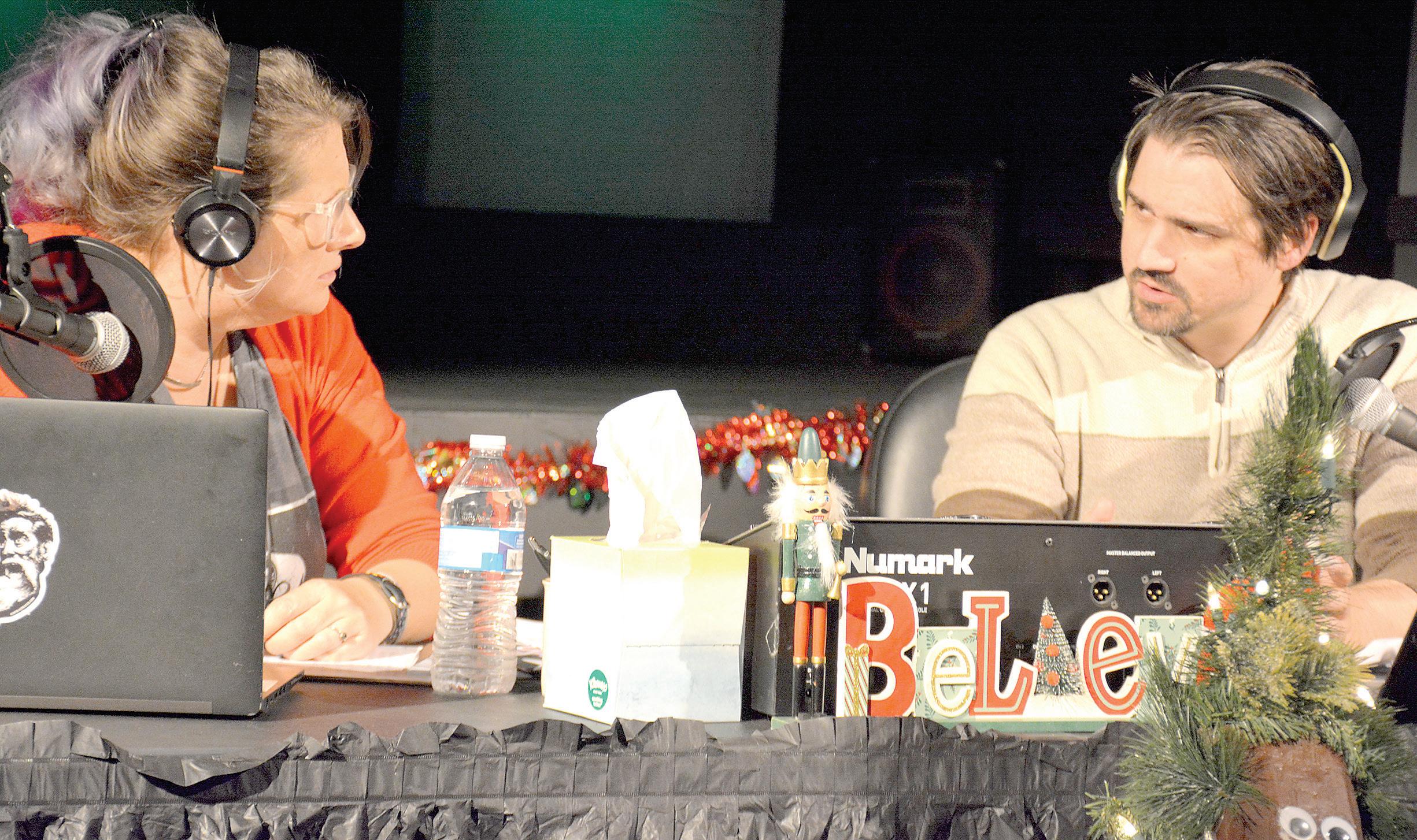Rhiannon Jordan and Ben Olson play radio DJs navigating twists and turns of a caller trapped in a haunted house in “The Colbern County Radio Broadcast Interruption: A Ghost Story,” performed tonight through Saturday at the ICT Warehouse Theater. The play was written by Piqua’s Nic Olson.