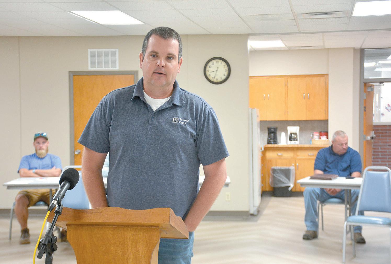 Jared Brooks, with Schwab Eaton of Manhattan, met with commissioners and Public Works Director Mitch Garner on Tuesday morning to address ongoing issues concerning the landfill.
