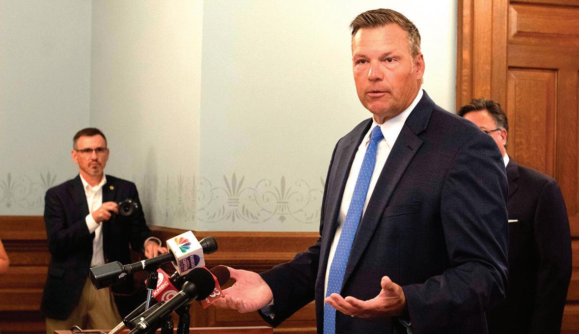 Kansas must stop changing trans people’s sex listing on driver’s licenses, judge saysKris Kobach offers his opinion during a June 26 news conference about how Senate Bill 180 should be implemented. (SAM BAILEY/KANSAS REFLECTOR)