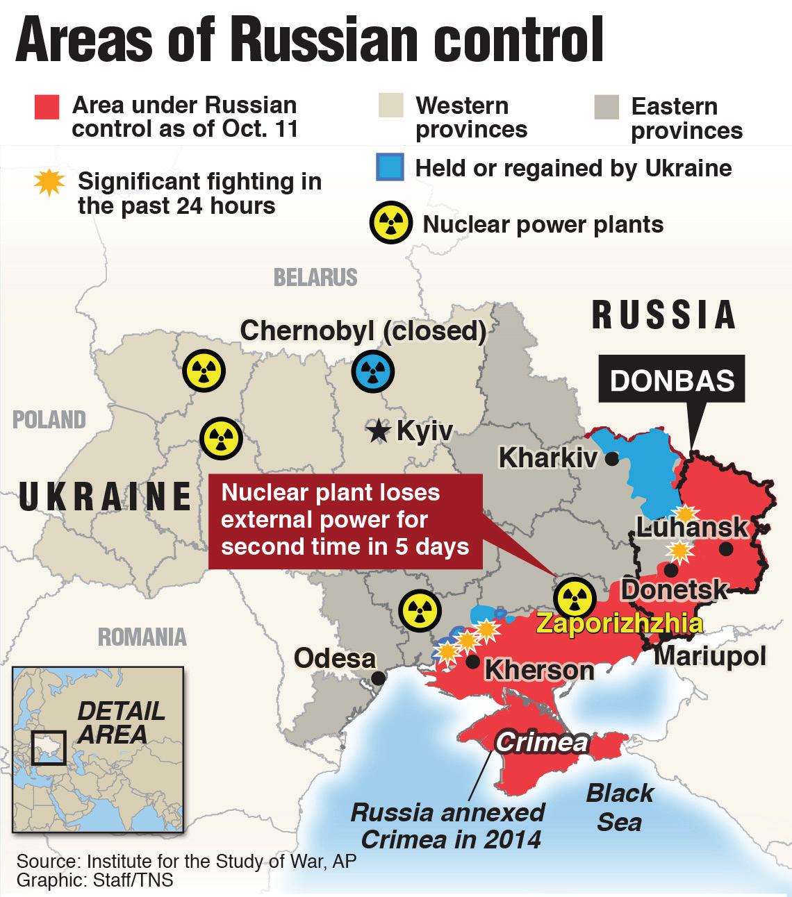 TALLINN, Estonia — Ukraine’s state nuclear operator has warned that power outages and other emergency situa tions at the Russia-oc cupied Zaporizhzhia Nuclear Power Plant could happen again any time.