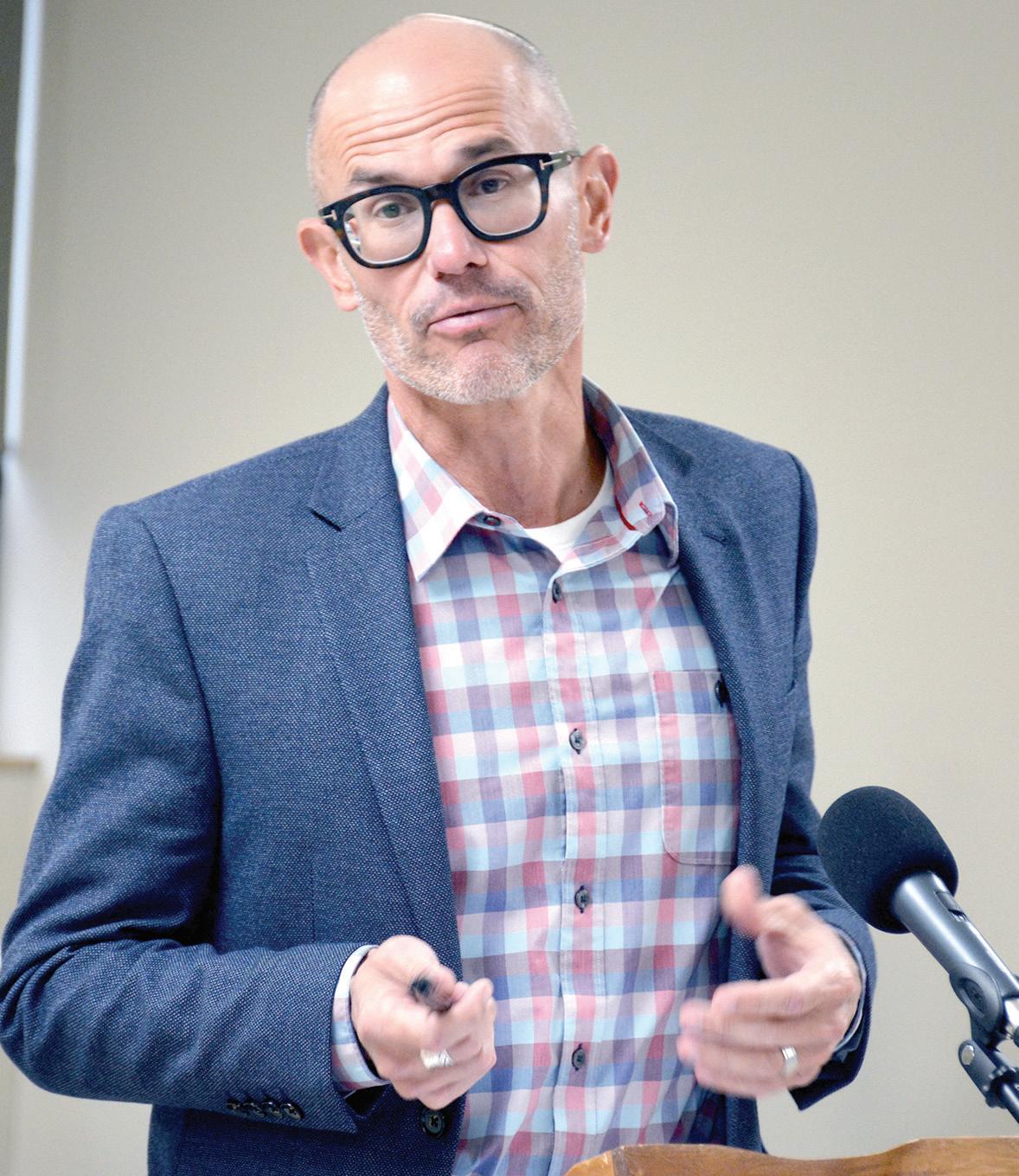 Jonathon Goering, economic development director for Thrive Allen County, speaks Tuesday with Allen County commissioners. REGISTER/VICKIE MOSS