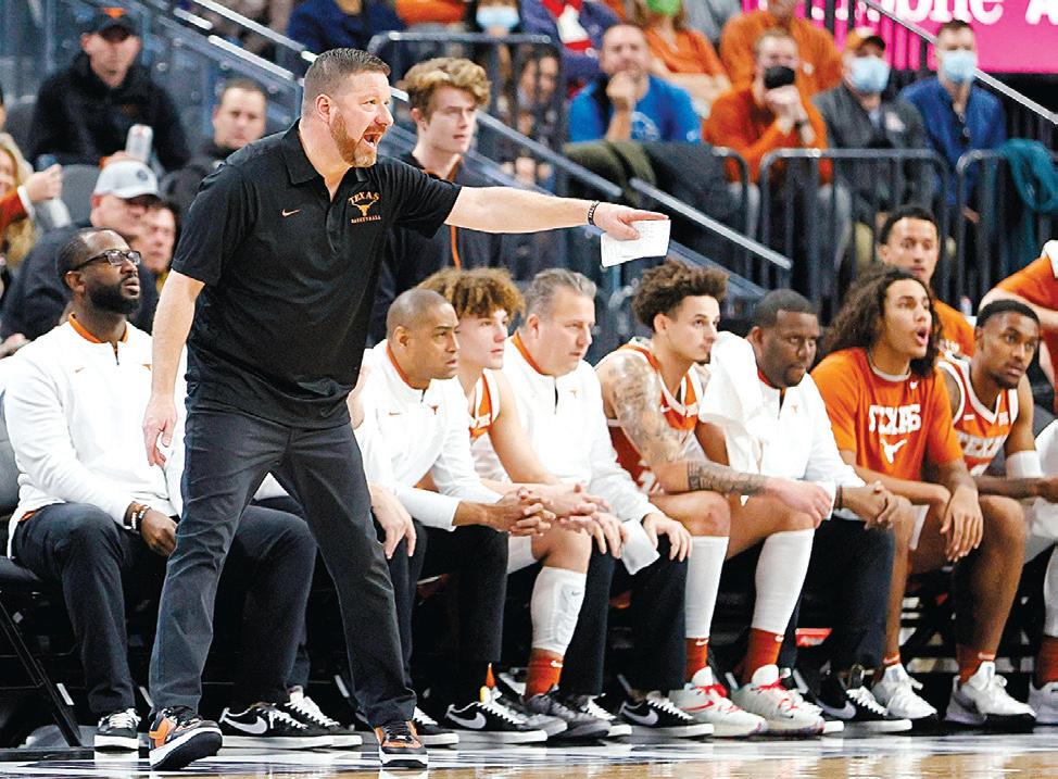 Texas head coach Chris Beard directs action during a 2021 game against Stanford. GETTY IMAGES/ETHAN MILLER/TNS