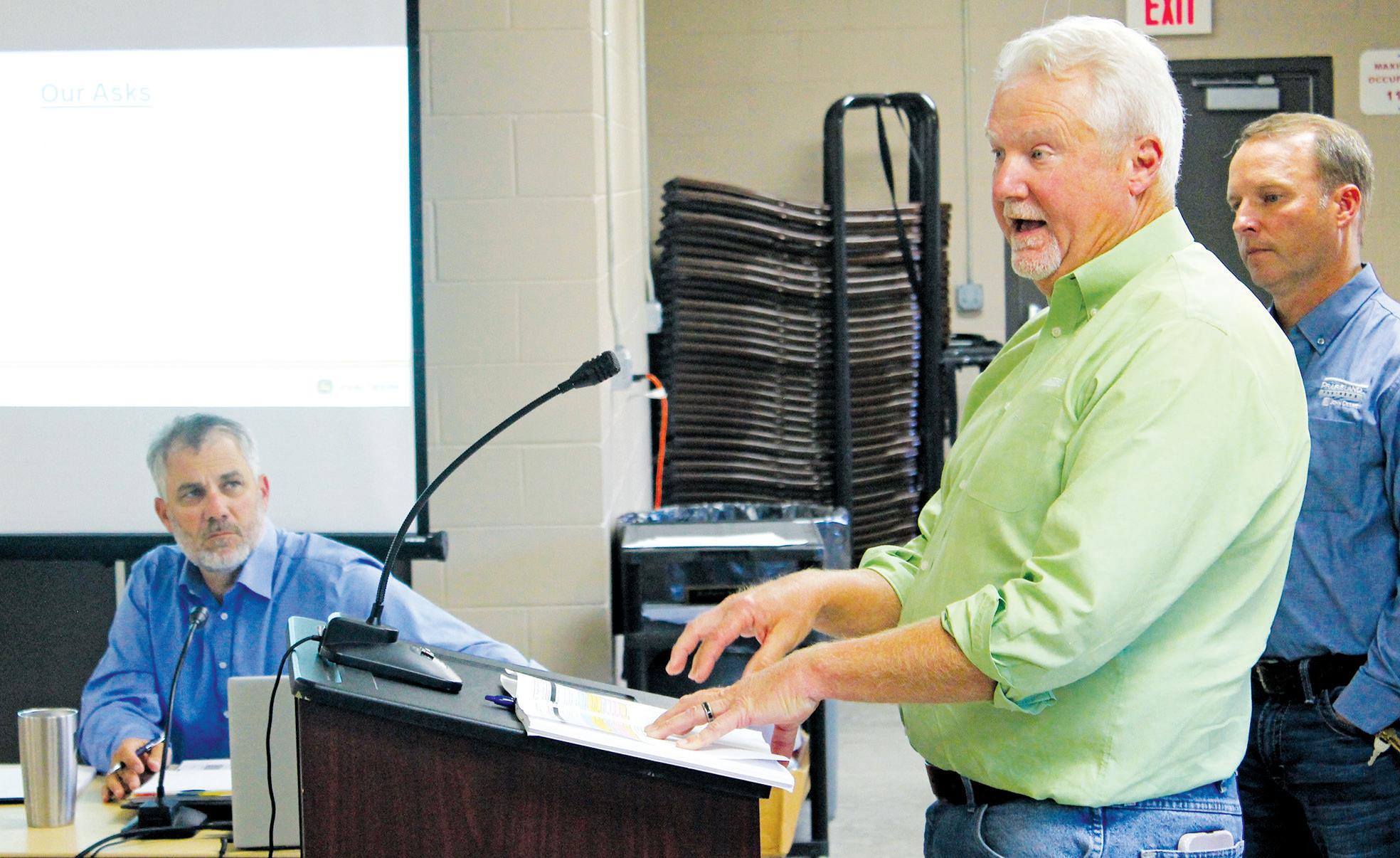 Much of Monday’s discussion centered on what type of sewer line would be sufficient for PrairieLand, and if the company should foot the