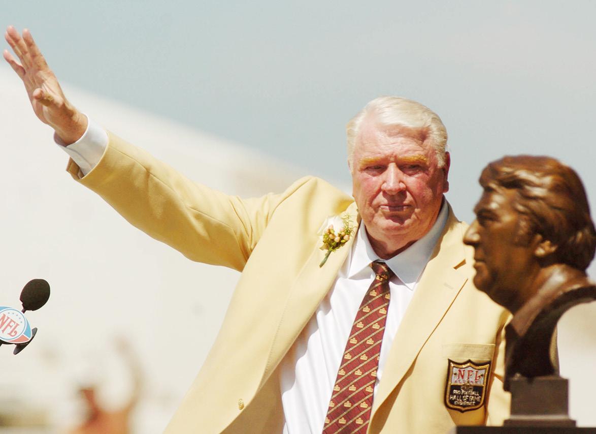 John Madden waves to the crowd at the Pro Football Hall of Fame induction ceremony on Saturday, Aug. 5, 2006, in Canton, Ohio. BOB LARSON/CONTRA COSTA TIMES/TNS