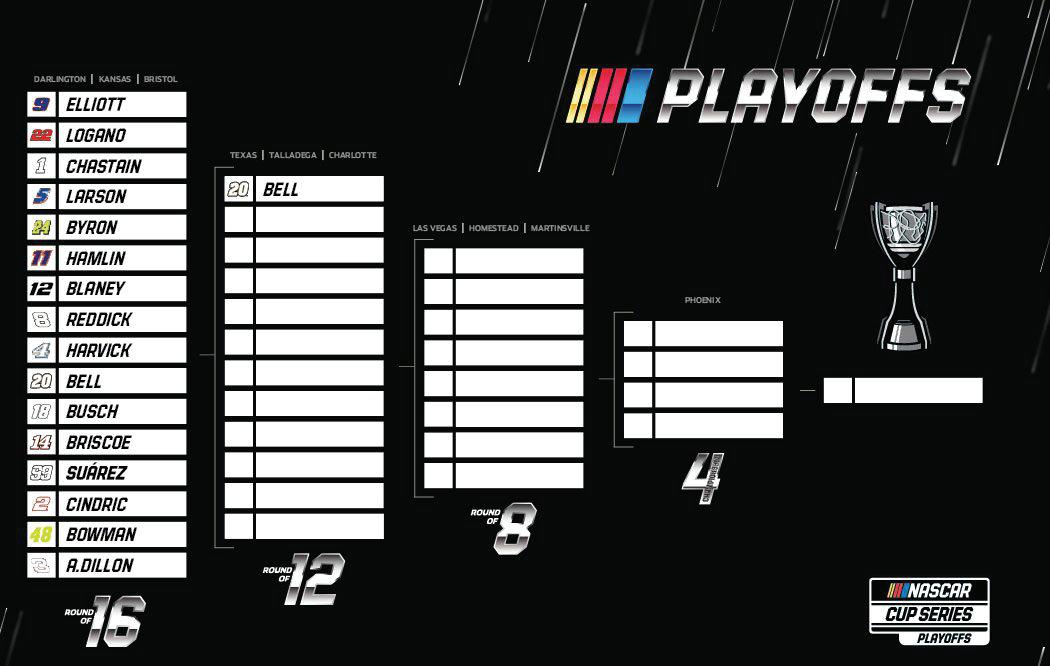 Christopher Bell, who ran third, is the first driver to lock himself into the Playoffs’ Round of 12 on points. The other 15 championship contenders will have to establish their positions in the final 12 — or suffer elimination — next Saturday night at Bristol Motor Speedway.