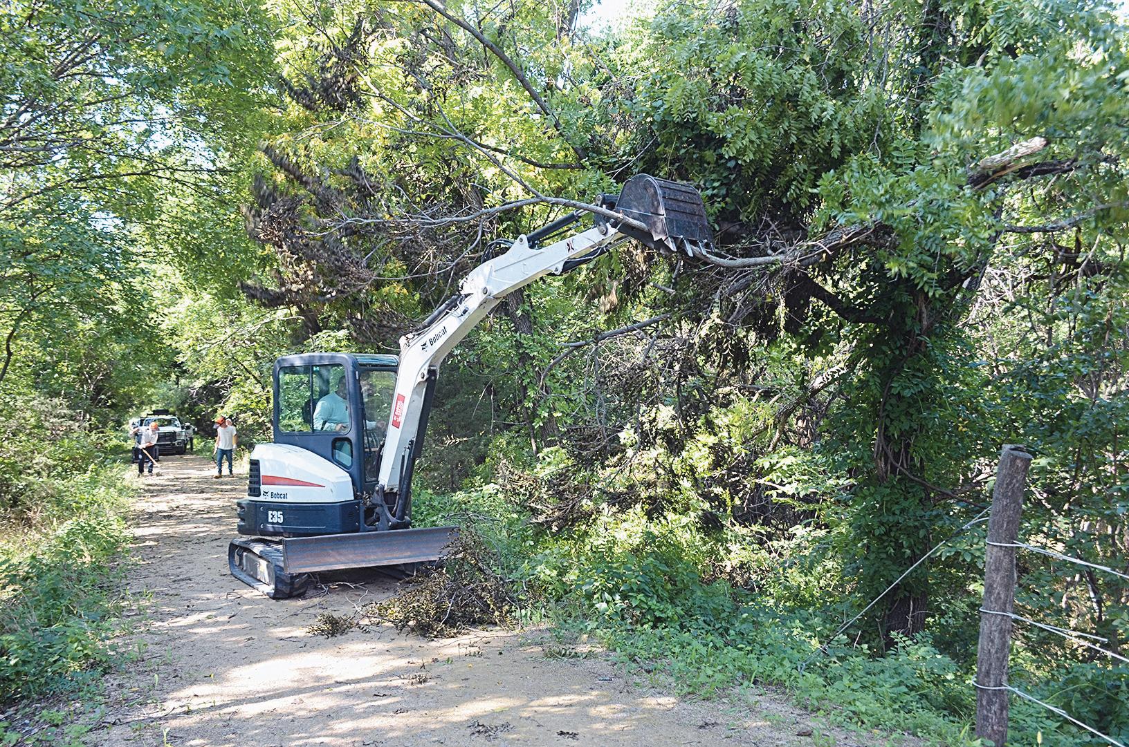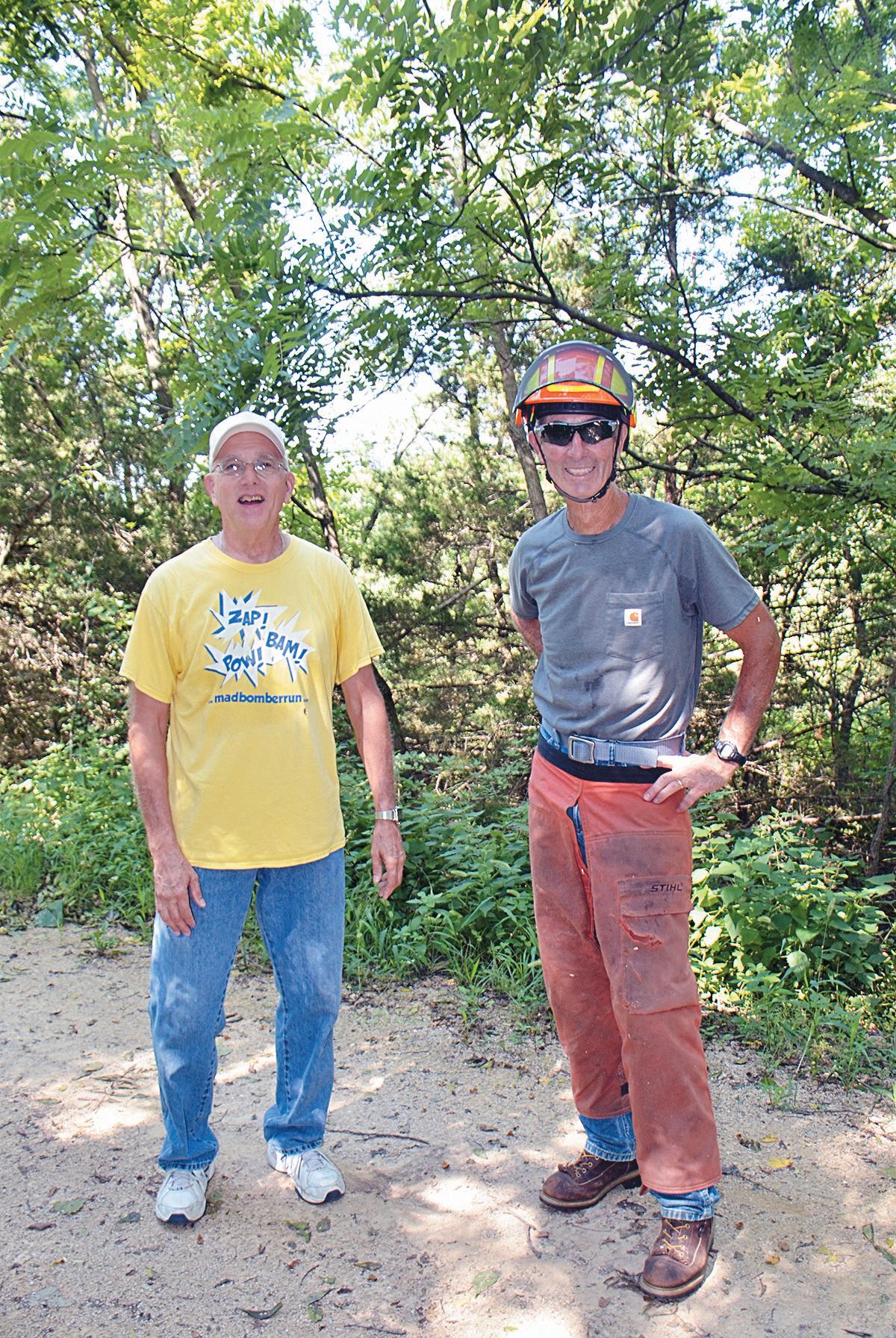 A team of Kansas Department of Wildlife and Parks workers offered up their services to assist with removing the mangled branches and uprooted trees that blocked the trail at several locations. They came armed with chainsaws, pole saws, trim-