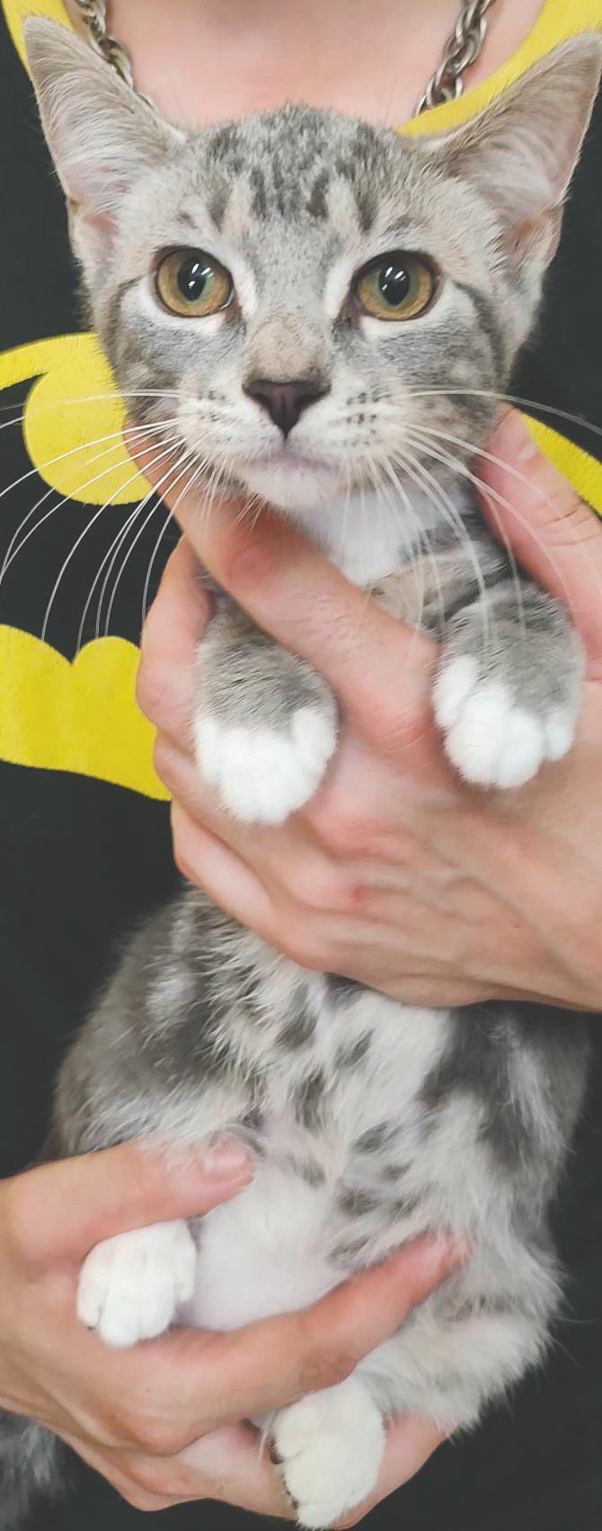 Lashell is a 4-month-old kitten. She loves all toys, especially ones that make noise. Lashell is a ectionate but is still getting used to the thought of getting picked up. She is litterbox trained and does well with other cats, we don't know how she is with dogs. Lashell's adoption fee is $50 which will include her spay, up-to-date shots, deworming, ea treatment, nail trim and a microchip.