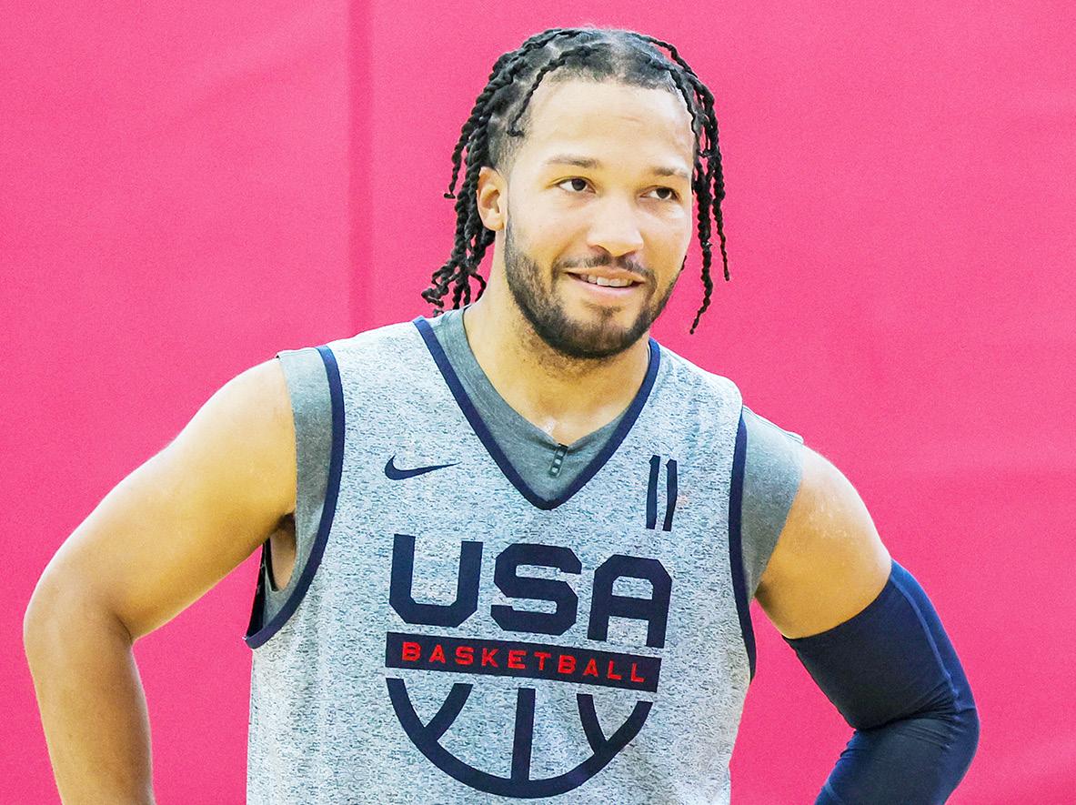 Jalen Brunson (11) of the 2023 USA Basketball Men’s National Team attends a practice session during the team’s training camp at the Mendenhall Center at UNLV. ETHAN MILLER/GETTY IMAGES/TNS