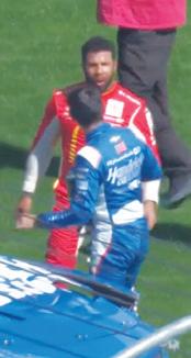 Wallace’s No. 45 Toyota bounced down off the wall and then he drove into Larson’s car, spinning both - with Playoff driver Bell getting tagged by Larson’s spinning Chevy in the aftermath. After Wallace and Larson’s cars came to rest in the infield, Wallace took his helmet off and marched toward Larson, who was just getting out of his car.