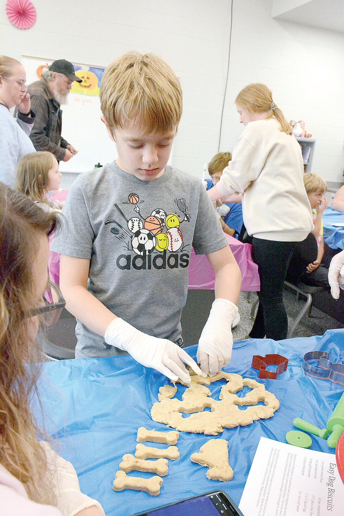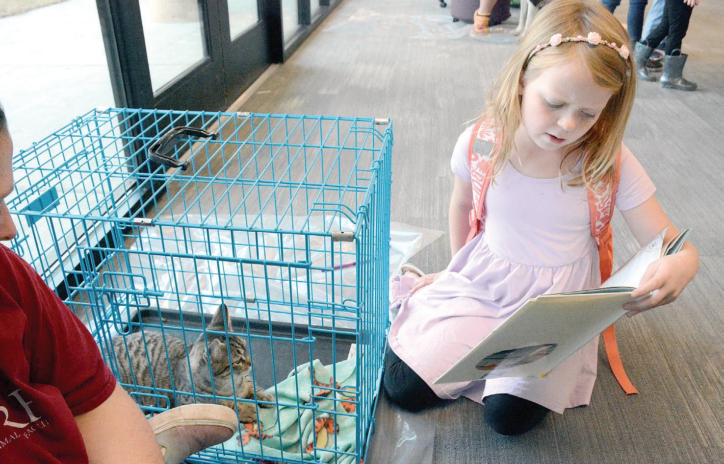 And though the dogs got most of the attention, the two cats, Abu and Berlioz, got a little love, too. Cameron Vaughn, a second-grader, set tled in to read a book to Ber lioz.