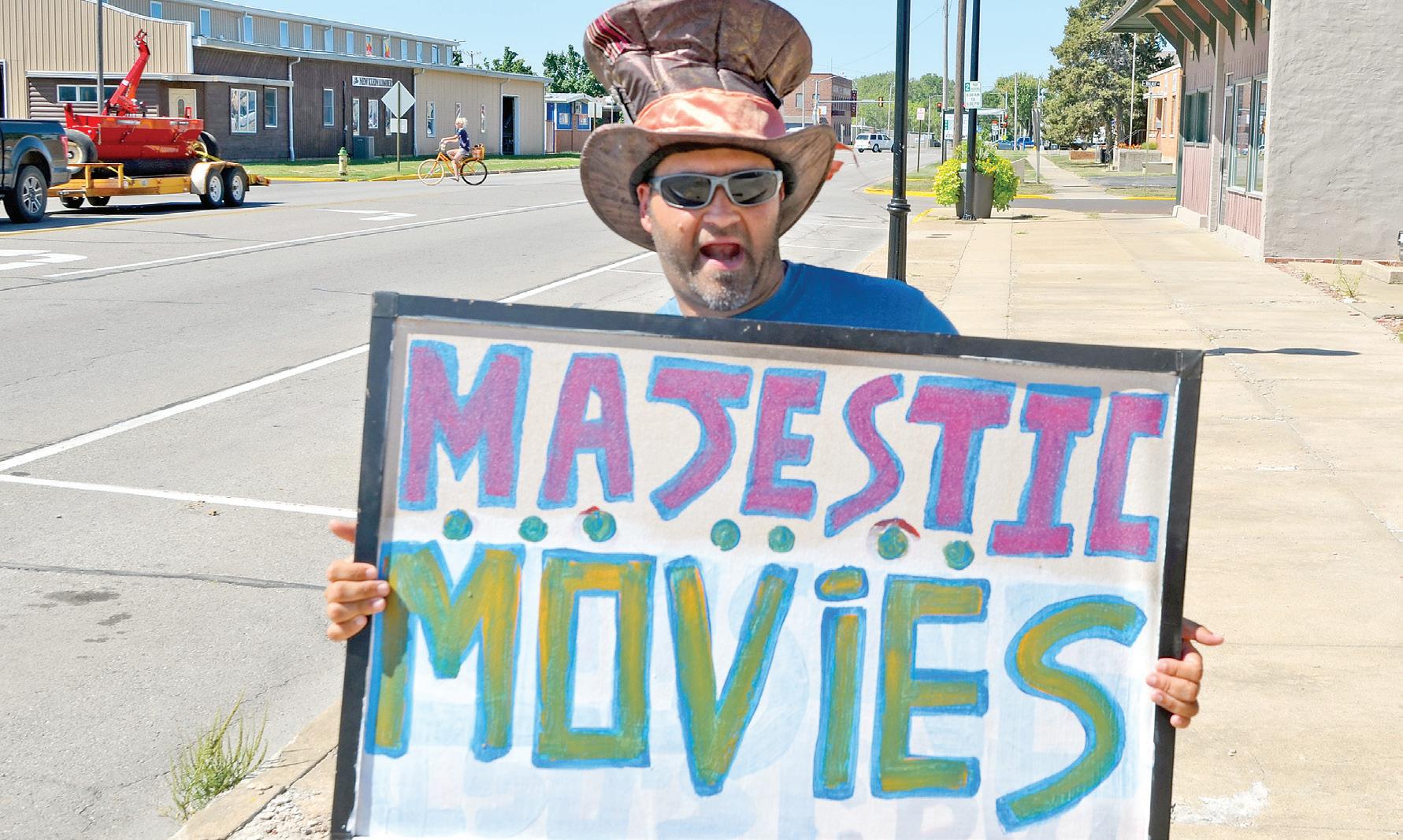 Still, who owns Majestic Movies in downtown Iola with his wife, Debra, has garnered the attention of passing motorists with his floppy hat and handheld billboard.He’s usually spotted along U.S. 54, somewhere near the downtown square, waving the billboard to anyone who will notice.