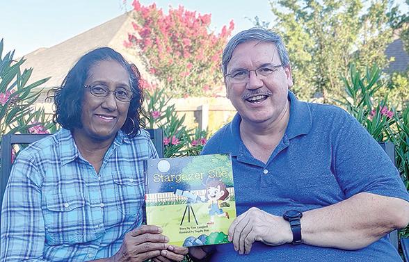 Tom Campbell, at right, wrote a children’s book, “Stargazer Sue,” based on his love of astronomy. He is shown with his wife, Juliana. COURTESY PHOTO