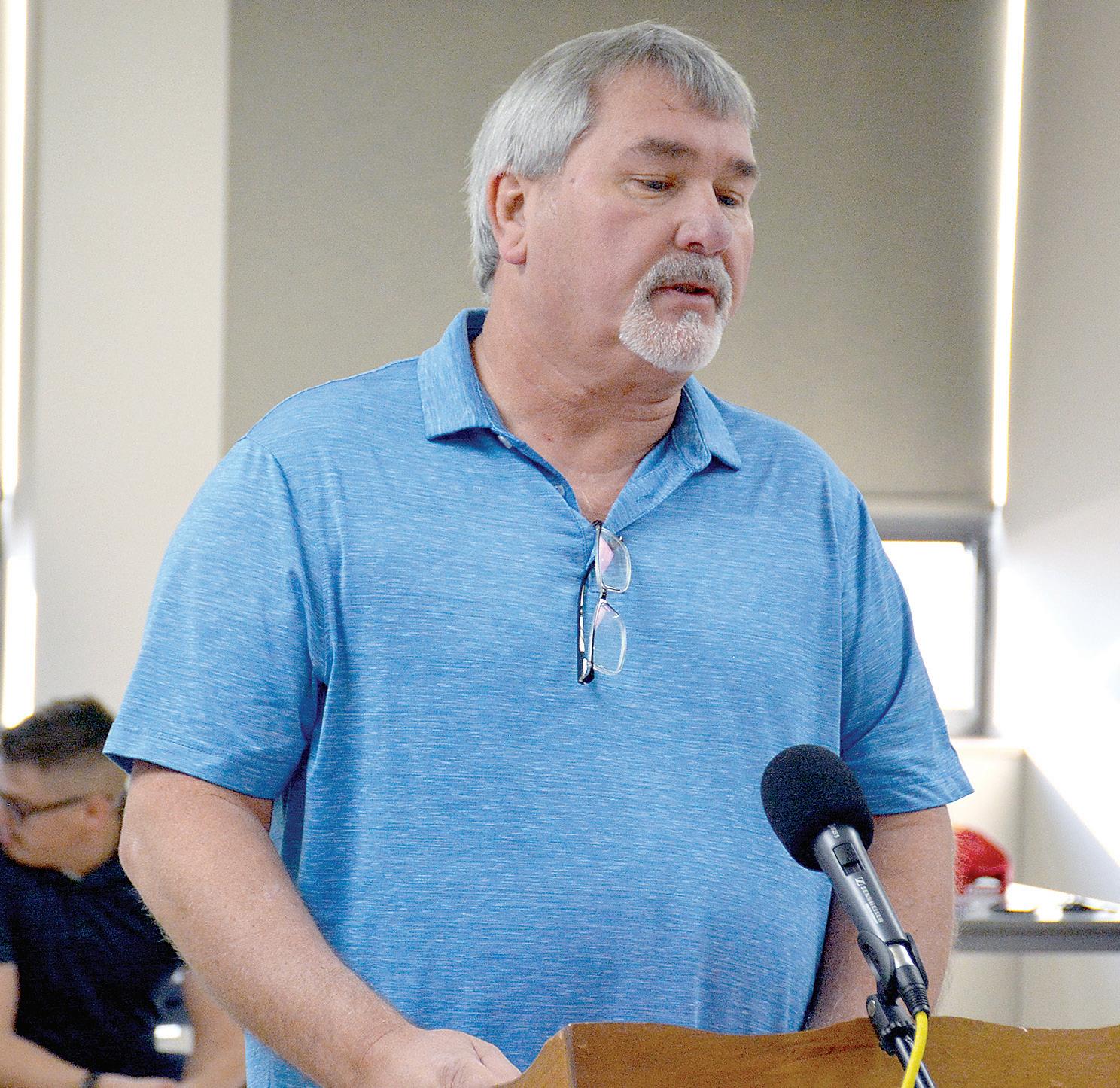 Iola Code Enforcement Officer Gregg Hutton speaks Tuesday to Allen County Commissioners about proposed changes to the city’s Neighborhood Revitalization Plan. REGISTER/VICKIE MOSS